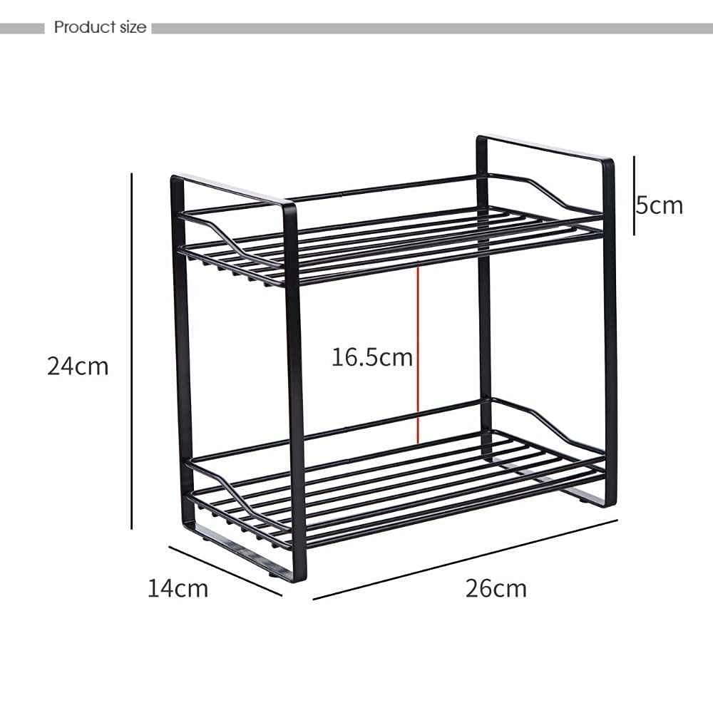 Woodywares 2-Tier Black Iron Spice Rack – Compact Kitchen Organizer for Countertops & Cabinets (Medium Size)