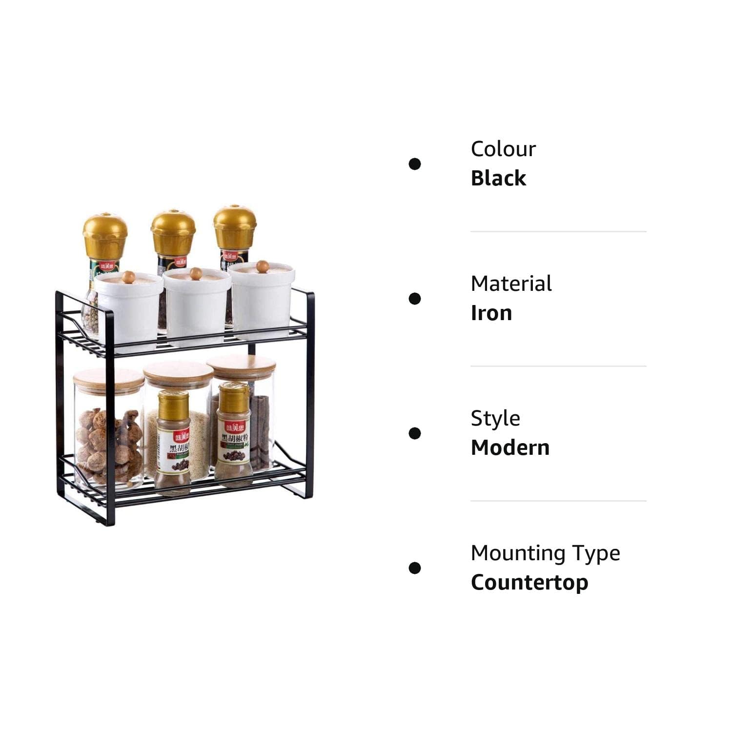 Made from high-quality black iron, this spice rack is built to last. It won’t bend, break, or rust easily – even in steamy kitchens. The sturdy frame ensures your jars stay safe and stable.